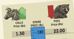 Options are available for stocks and indices at price intervals called the strike price. For instance, if the price of the underlying share is Rs 100, options will be available in intervals of Rs 5. For an index, the strike price may be in intervals of Rs 50. The price paid for an option is called the premium. At the beginning of the contract month, the probability of a share moving in either direction is higher, so the premium is usually high. As the expiry date nears, the premium goes down progressively.