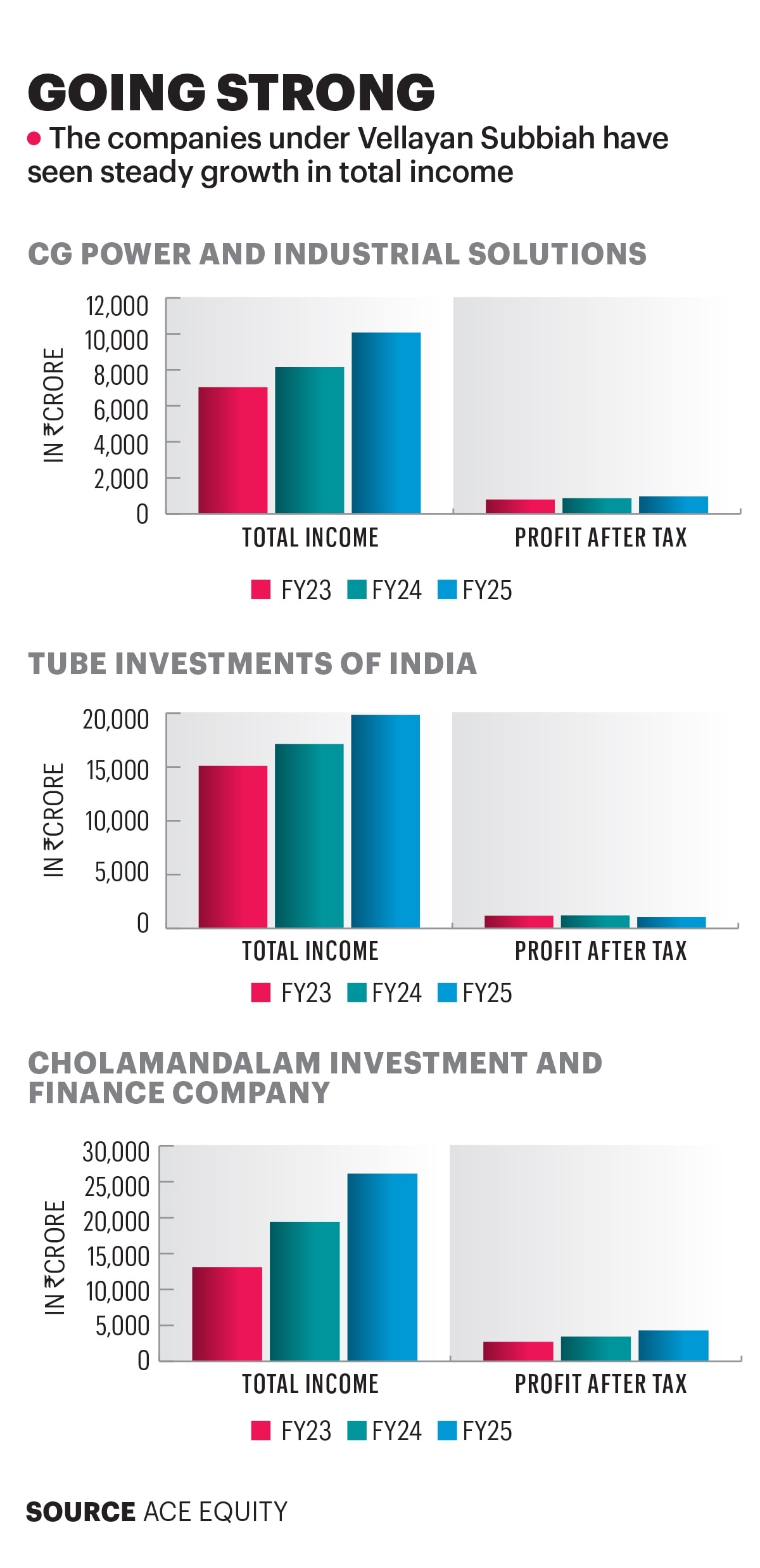 Perhaps there is no better metric to assess Subbiah’s stewardship of Cholamandalam than the fact that it now employs 65,000 people, up from 1,500 when he took charge. “Cholamandalam, which has emerged as one of India’s most respected NBFCs, does not get as much attention as CG Power,” maintains Roy. Even when NBFCs stumbled on asset quality or got caught by liquidity mismatches, Cholamandalam “maintained strong credit culture, while diversifying its product suite.”