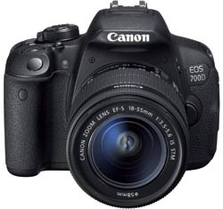 This Canon DSLR has a 18MP APS-C 'Hybrid CMOS' sensor and phase detection AF from imaging sensor for Live View and Video. There is continuous auto focus in movie mode with subject tracking. It is equipped with 14-bit DIGIC 5 processor and has ISO up to 25600 (expanded).