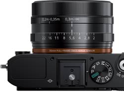 This one is expensive for a compact camera but it is as big, or as small, as a premium compact with the difference that this is a full frame camera with a sensor four times larger than what you find in other cameras this size. It has a single 35mm F2 still lens, which means there is no zoom, but the sensor means you can shoot a picture and crop the part you intended to zoom into. The specifications include 24.7MP Exmor R CMOS Sensor, f=35mm, 1/4000, ISO25600, 1080p, SD card.