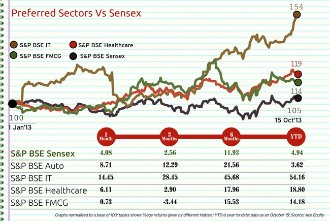 Varun Goel of Karvy adds telecom and private sector bank stocks to the list. "We are positive on pharmaceuticals, IT, FMCG and telecom sectors. We believe these will show good earnings growth. Selectively, even auto companies and private sector banks have begun to turn attractive," he says.