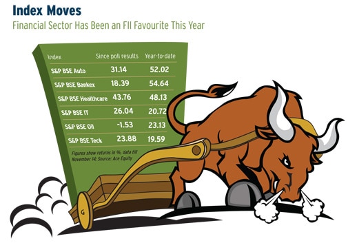 Nilesh Shetty, associate fund manager, equity, Quantum Asset Management Company, says, "The strong election mandate substantially reduces political risk over the next five years. The perception that the new government is pro-business has increased India's potential. FIIs have increased exposure to India due to its attractiveness versus other emerging economies."