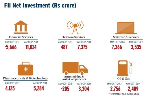 Auto & auto component and oil & gas sectors are among the top six this year with FII investments of Rs 3,304 crore and Rs 2,409 crore, respectively.