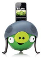 Angry Birds Pig HelmetYou have the home theater, but still wish for a nice iPod/iPhone dock that you can place next to the couch? If you love the Angry Birds game, get yourself the Pig Helmet 2.1 speaker. With an iPod dock on top, it connects to smartphones and tablets using a 3.5mm auxiliary cable while offering superb sound.