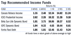If you want to earn more, you could consider corporate fixed deposits, which, in the past two years, have offered better rates of interest. However, this comes with an additional risk. While small savings schemes carry the sovereign tag, you can invest only up to Rs 70,000 in the Public Provident Fund (PPF). Also, the interest earned on your investment in the National Savings Certificate (NSC) is not exempt from tax, which brings down your effective rate of return. The advantage of such investments is that they are the lowest on the risk spectrum. However, as most of us want some good returns as well, it may be prudent to opt for investment avenues that offer better riskadjusted returns and perform decently in a down market. Ultimately, it's this perfect combination that is going to allow you to get a good night's sleep.So, is there any such investment? Kumar suggests that investors look at income funds from a longer term perspective for a fixed income portfolio. Most income funds have an exposure to AAA-rated bonds with no suspicious investment in their portfolio, he says. In the long run, these funds fetch better returns than other short-term funds. However, he adds, investors might be saddled with capital loss in case of a sharp rise in interest rates. Generally, these funds have managed interest rates with dynamism. The maturity of the underlying portfolio of income funds has ranged between one year and 15 years within the same fund, which clearly proves their claim.