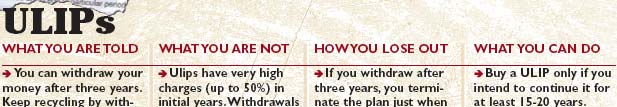 Not to say that the regulatory authorities are totally apathetic towards such grievances. Several systemic changes have been incorporated from time to time to tighten the noose on the elusive offenders. For instance, to prevent the misselling of Ulips as mutual funds, the Irda issued fresh guidelines in July 2006. The insurance watchdog made it mandatory for Ulips to have a life cover of at least five times the premium paid. This m e a n t that they could not longer be sold as primarily an investment product with a wafer thin life cover. The minimum tenure was increased from three years to five years to encourage longterm holding.