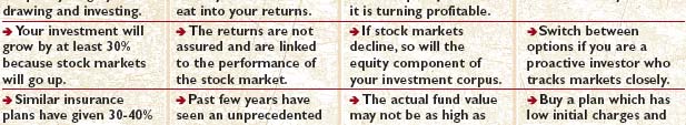 | ON THE FANTASTIC RETURNS BEING PROMISED ON SOME UNIT-LINKED INSURANCE PLANS: The Life Insurance Council, a body of life insurers in India has stipulated that insurers are required to project a rate of return ranging between 6% and 10% only while making illustrations. Irda has received a few complaints on misleading literature being circulated in the market.We wrote to the concerned insurance company to initiate action against those responsible for circulating the unapproved literature. Besides, Irda issued a public notice in March 2007 cautioning investors not to get carried away by such claims. |