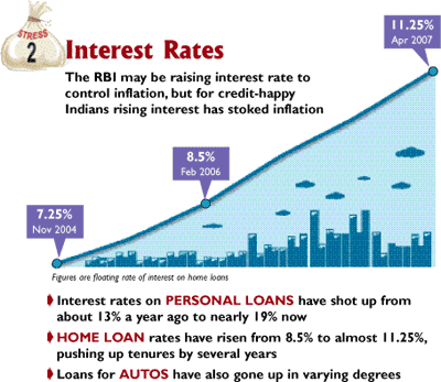 To the contrary, some, like Ujjain’s Madhukar Kaushik, have been forced to take a new loan to fund the old one. Kaushik, a bank executive himself, had taken a home loan in 2000 at 8.5% for 15 years. Then came a second home loan, a personal loan and loans from some employee societies. His finances crumpled under the weight of high interest rates and in 2006, Kaushik was forced to take another personal loan in an attempt to tide over the rough times.