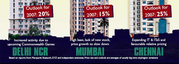 “The price rise was the steepest between October 2005 and March 2006. We won’t see appreciation of this kind because even though demand is still buoyant, supply is even higher,” says Kumar Gera, chairman of CREDAI, an association of real estate developers.