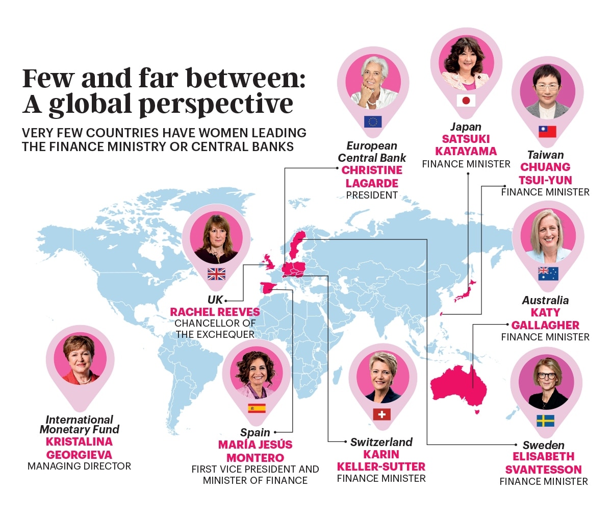 Globally, women head the finance ministry in only a handful of countries, including Australia, Japan and the UK. The President of the European Central Bank is Christine Lagarde, and the International Monetary Fund (IMF) is led by Kristalina Georgieva as its Managing Director. Gita Gopinath was associated with the IMF till recently, first as its Chief Economist and later as the First Deputy Managing Director. She has now moved back to academia.