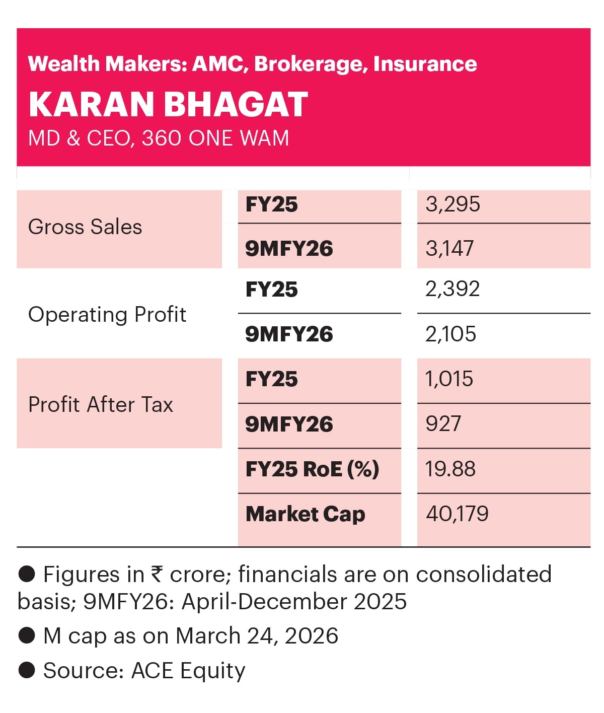 This was reflected in revenue from operations, which grew at a compound annual growth rate (CAGR) of 28% over FY21-25, while profit after tax rose 29% annually over the same period. Operational efficiency also improved, with cost-to-income falling to 45.9% in FY25, from 53.9% in FY21. Bhagat’s efforts have been recognised in the BT-PWC India’s Best CEOs in the Wealth Makers category. “For us, growth has not been cyclical. It has always been structural,” Bhagat, MD and CEO at 360 ONE WAM, tells BT.