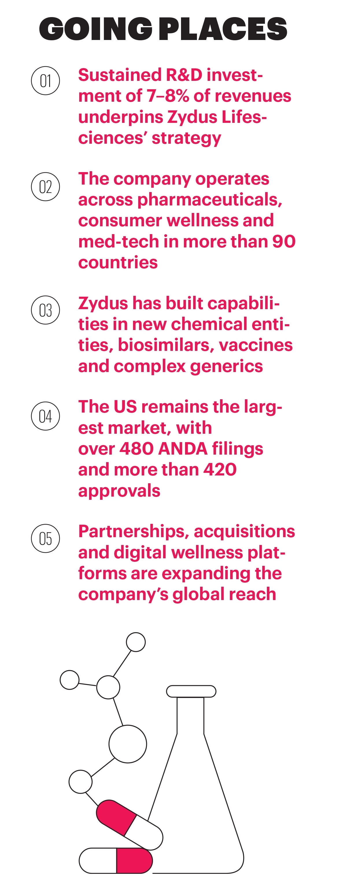 Investments support research programmes across new chemical entities (NCEs), biotechnology, vaccines, rare disease therapies, generics and wellness products. “All our businesses are supported by a robust innovation engine and a network of regulatory-compliant manufacturing facilities across the globe,” says Patel.