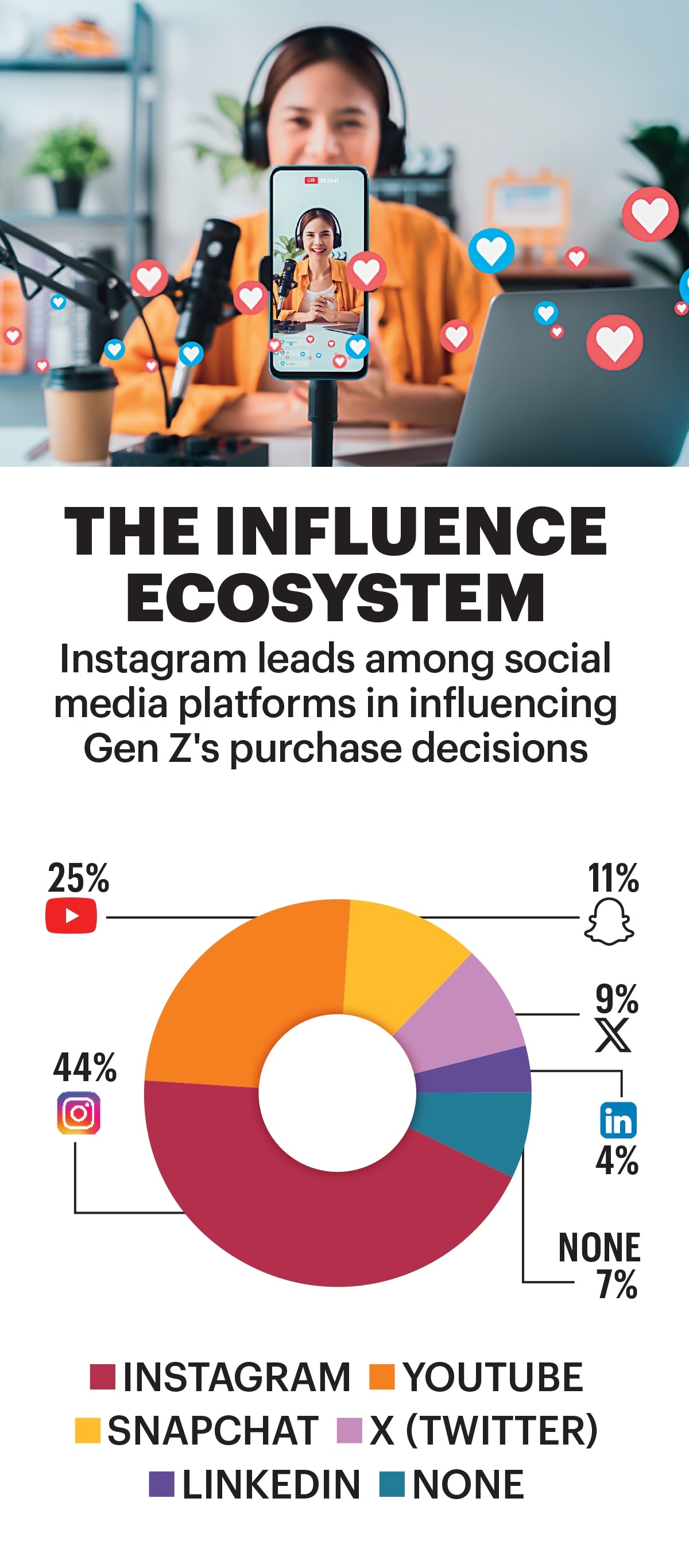 The impact and potential of this ecosystem is clear and the entrepreneurial zeal mirrors evolving consumer behaviour. The BT-PRICE Gen Z Consumption Behaviour Survey reveals that 41% of Zoomers use the internet primarily for social media. They’re not just consuming content there; they’re acting on what they see. A good 22% of Gen Z respondents said they frequently purchase products or services after seeing them on social media, while 38% do so occasionally. But there’s a clear winner among the platforms: 44% said Instagram influences their purchase decisions, followed by YouTube at 25% and Snapchat at 11%.