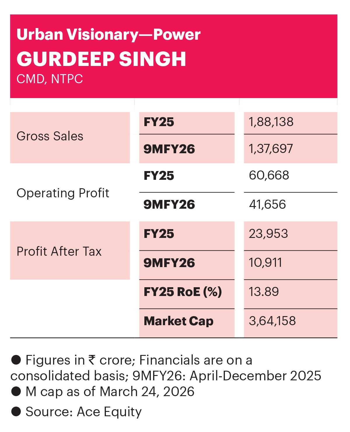 Singh has positioned NTPC at the forefront of energy transition and started initiatives like aggressive renewable addition, green hydrogen, acquisitions, biomass, waste-to-wealth and CCU (carbon capture and utilisation) to transform NTPC from merely a “coal-based power generating company” to a “sustainable integrated energy company”. He has been felicitated in the BT-PWC India’s Best CEOs list under the Urban Visionary-Power category.