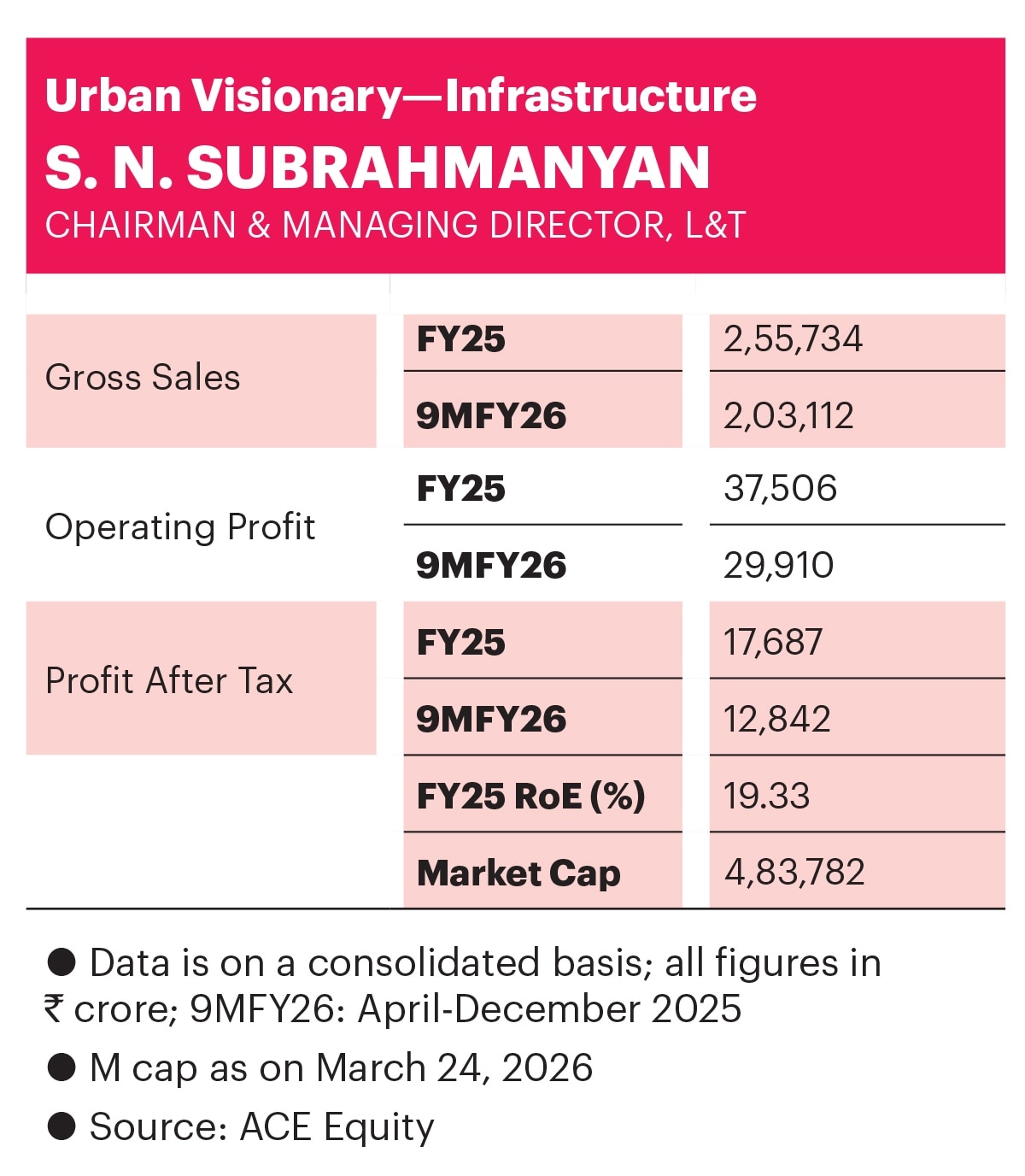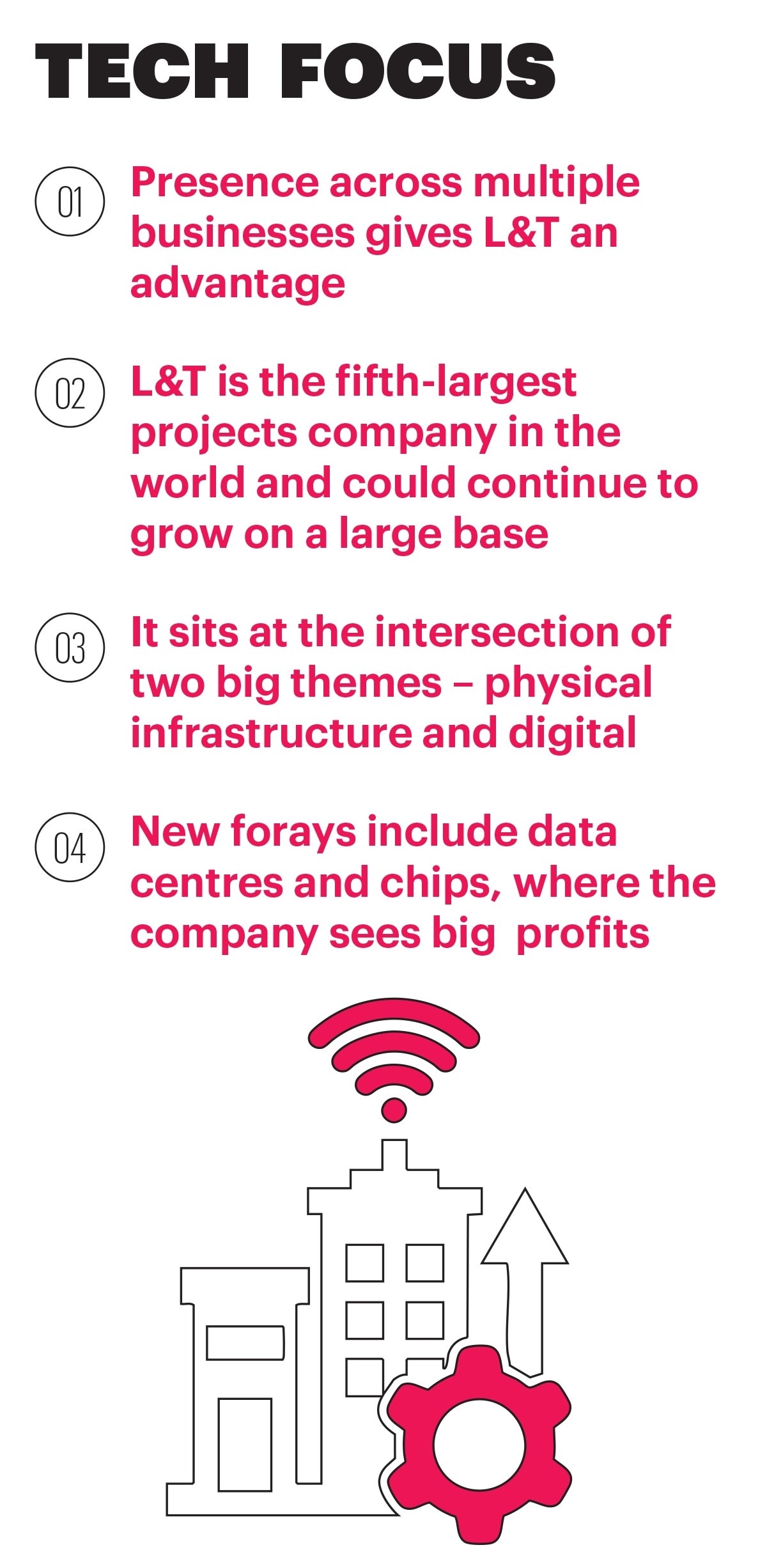 Growth on a large base is anything but easy. But not at L&T. “We are at a reasonable size today and probably the fifth-largest projects company in the free world,” says Subrahmanyan. Prasad, a long-time L&T tracker, says the company sits at the intersection of two themes—physical infrastructure and digital transformation—putting it in a strong position. “Very few companies globally, let alone from India, can credibly claim to lead in both the domains,” he adds.