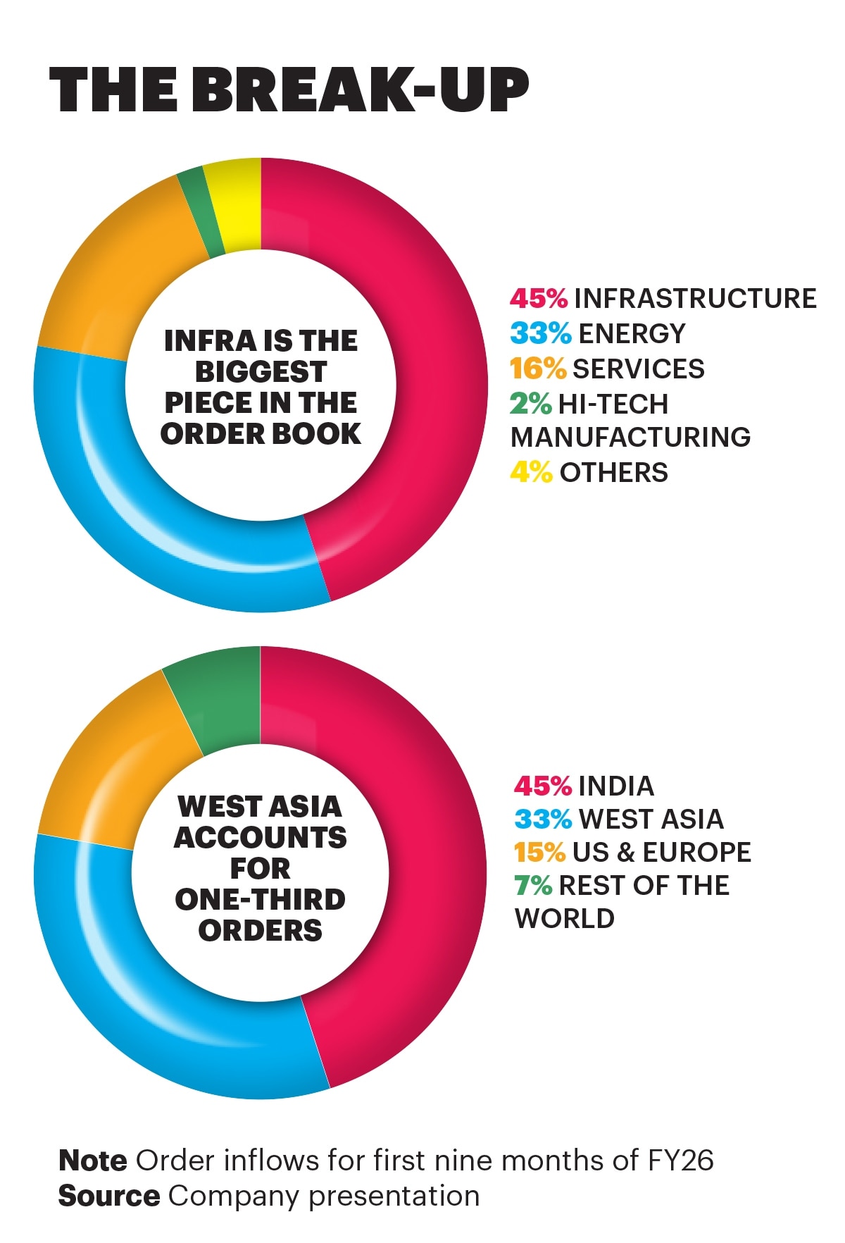 The world is amid disruptions that seemed unimaginable a couple of years ago. Be it business or geopolitics, organisations have to brace themselves for a future that will push their resilience to the limit. It is no different for L&T. A Motilal Oswal Financial Services report on L&T in early March outlines headwinds in two areas—the company’s international revenue (West Asia order book if big) and the IT subsidiary’s valuation getting impacted by the AI-led disruption.