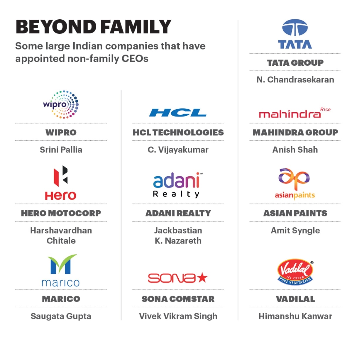 A similar shift is already visible across other marquee groups. Mahindra appointed Anish Shah as its first non-family CEO, Marico’s Harsh Mariwala entrusted leadership to Saugata Gupta, and Sona Comstar’s Late Sunjay Kapur ceded operations to professionals. Pharma majors Cipla and Dr Reddy’s have also embraced professional leadership, while Infosys pioneered the model years ago. Meanwhile, Asian Paints and Havells India, despite promoter ownership, have been professionally managed for years.