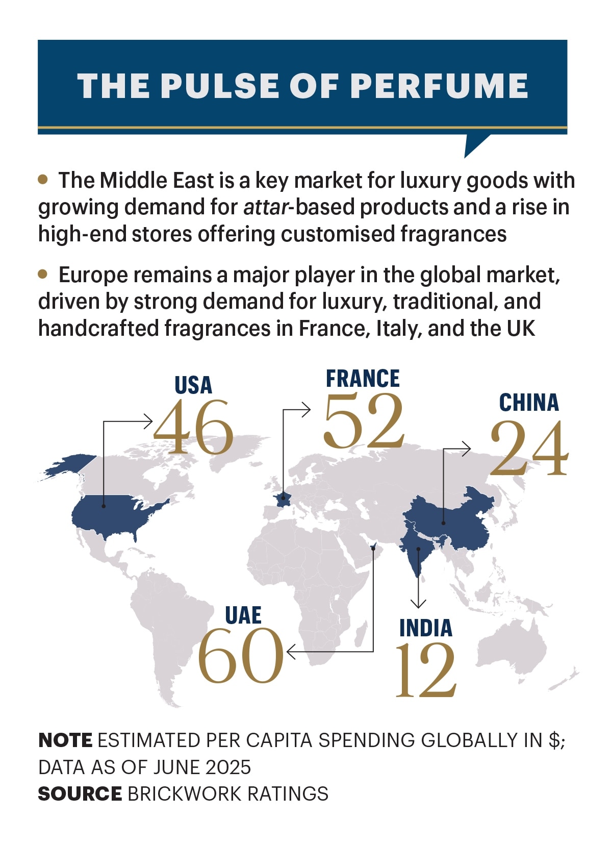 While rising disposable incomes are fuelling demand, aspiration is the bigger driver. Social media, celebrity endorsements, and democratisation of luxury cues have amplified the desire for statement-making scents. “Consumption growth is coming from aspiration across all socioeconomic segments, not just Tier-I cities. Tier-II buyers and even Gen Z consumers are driving growth, influenced by global exposure and cultural trends,” notes Abhay Gupta, luxury strategist and founder of Luxury Connect Business School.