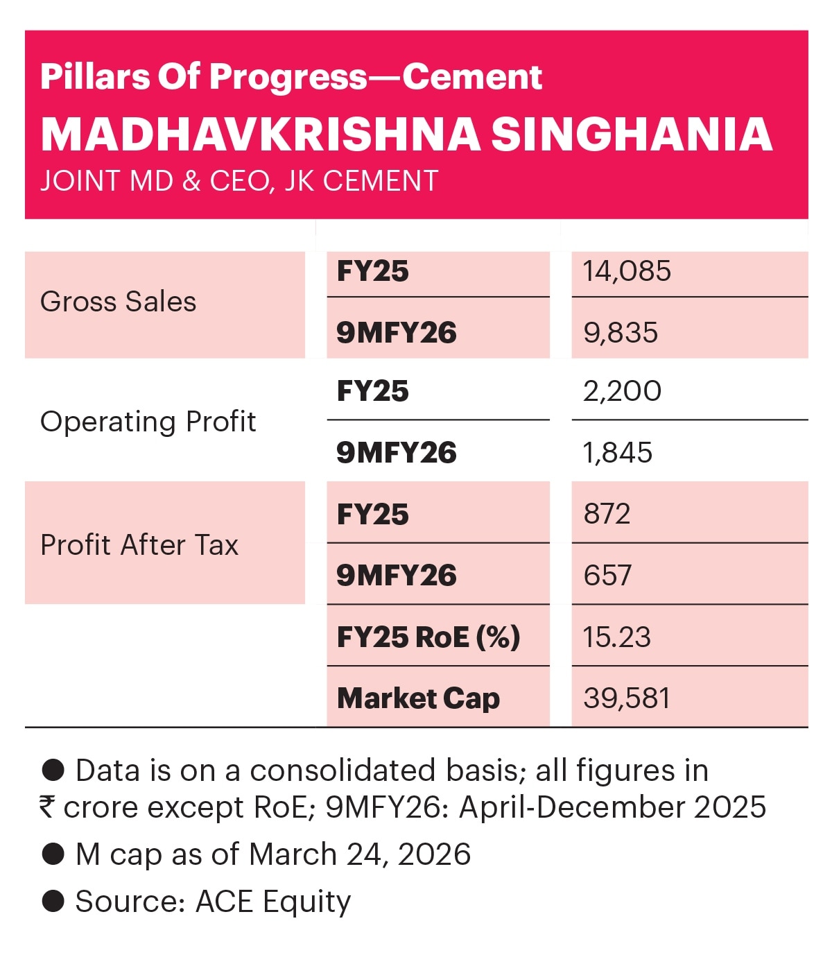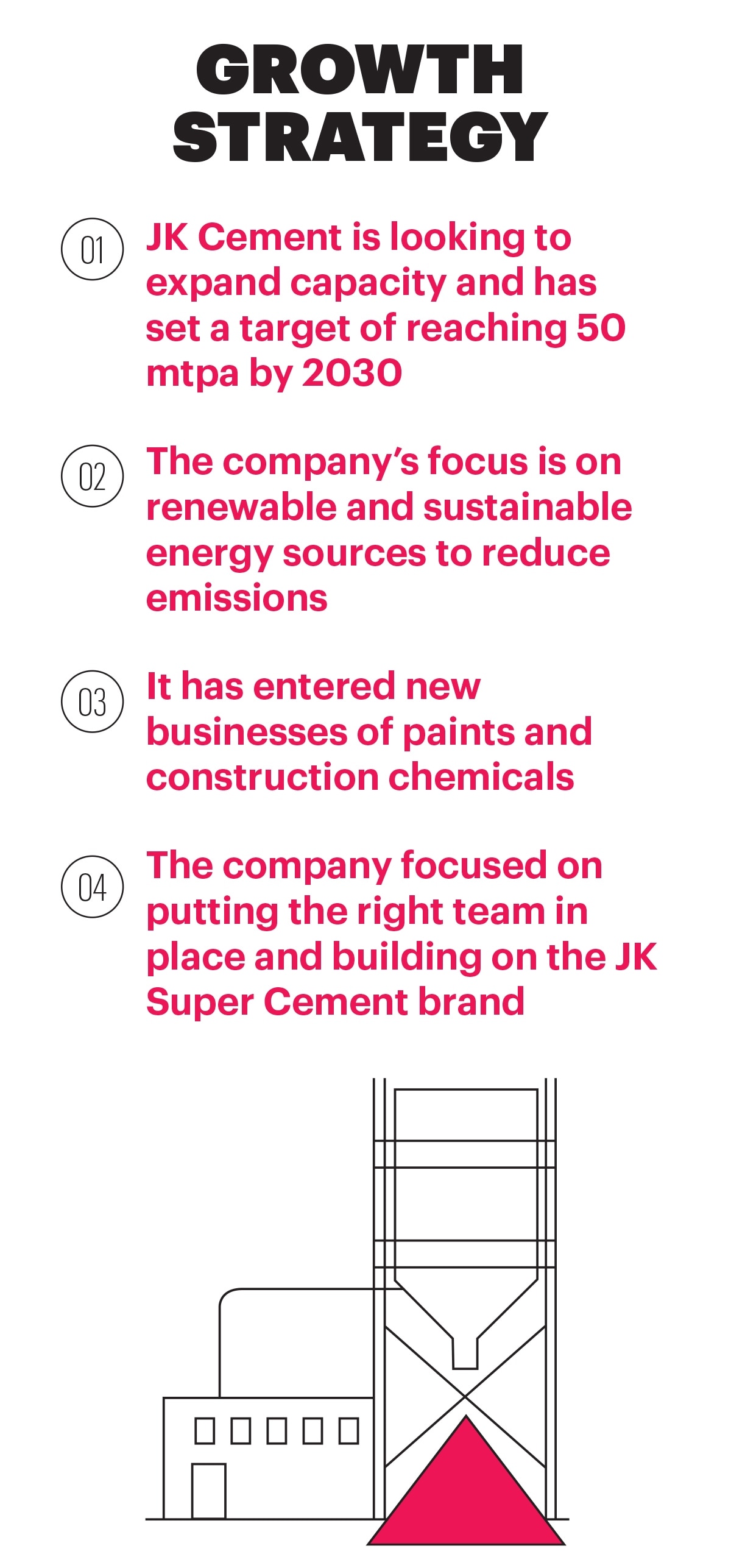 Madhavkrishna, 37, who was appointed the CEO of JK Cement in 2020 and made Joint MD and CEO last year, says the firm has a clear road map to expand the grey cement capacity to 50 million tonnes per annum (mtpa) by 2030. “Our transformation started around 2014 when we started massive expansion projects. That time, our grey cement capacity was about 10 mtpa,” says Singhania.