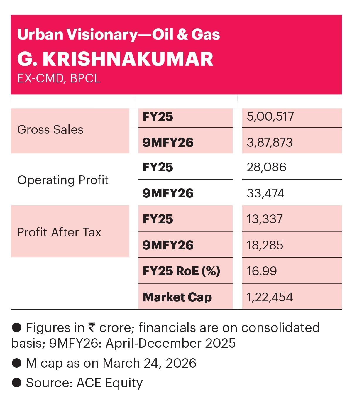 This is exactly what Bharat Petroleum Corporation Ltd (BPCL), a public-sector oil and gas company, is doing. In view of these initiatives, ex-BPCL CMD G. Krishnakumar has been recognised as the Urban Visionary in the BT-PWC India’s Best CEOs this year. He retired in April 2025.
