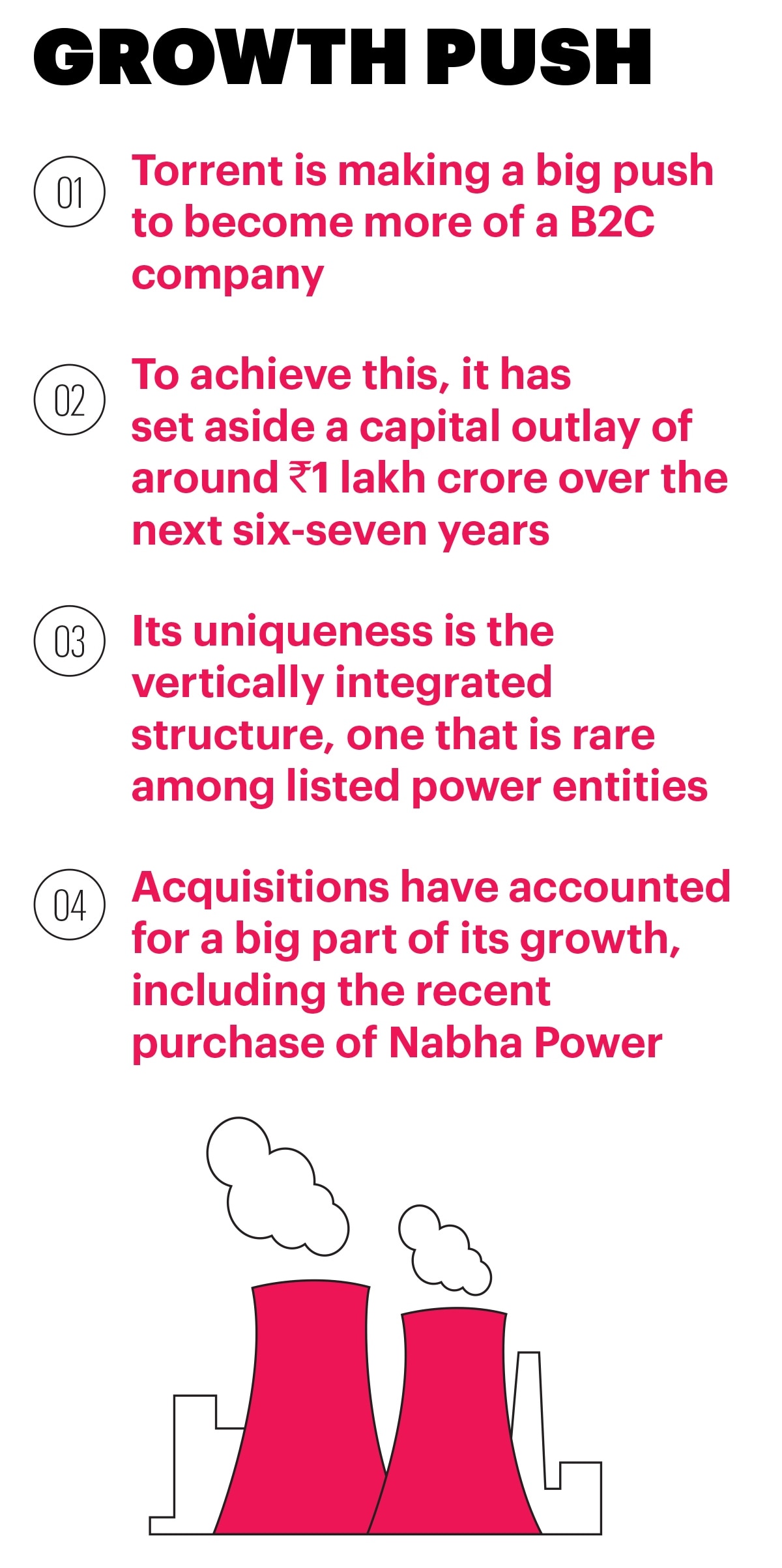 First off, there was the buyout of Nabha Power in Punjab from L&T, followed by the unveiling of a new brand identity for the group, which also has a presence in gas, pharmaceuticals, electricals, and diagnostics. The brand identity indicates a new B2C (business-to-consumer) thrust. “That is what we are doing at the group level too with both Torrent Power and Torrent Gas aggressively targeting the B2C segment. Even on renewables, we are tying up PPAs (power purchase agreements) with commercial and industrial customers,” he says.