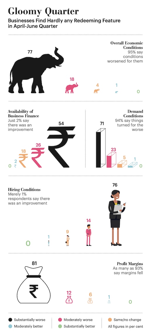 The survey shows that respondents are expecting some deterioration in areas like cost of raw material and selling price. For example, 11 per cent corporate leaders said cost of raw material will fall in the September quarter as against 25 per cent hoping so in the previous survey.