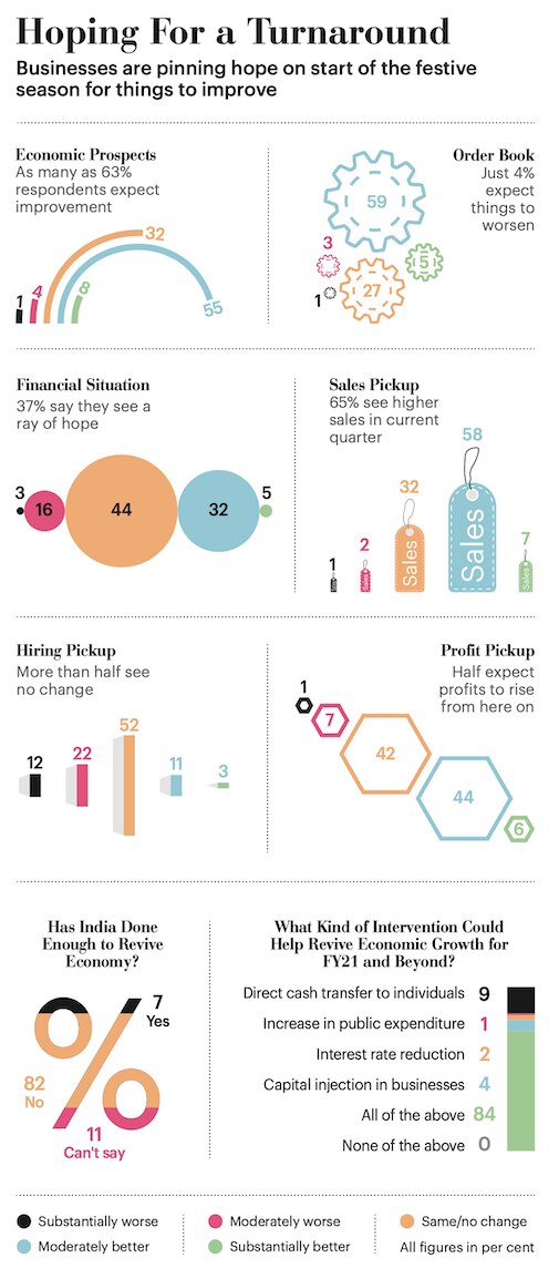 About the future roadmap, 84 per cent said interventions such as direct cash transfers to individuals, increase in public expenditure, interest rate reduction and capital injection in businesses can boost economic growth for FY21 and beyond. The positive outlook of business leaders in the middle of a global crisis has a surprise element to it. Now, whether they continue to hold on to this optimistic view is as unpredictable as the march of the pandemic.