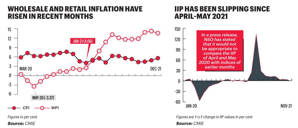 The underlying factors are giving mixed signals. While inflation—both wholesale as well as consumer—has been rising in recent months, industrial productivity has been falling, with the Index of Industrial Production (IIP) slipping since April-May. At the same time, exports—another barometer of economic activity—have taken off big-time. December 2021 has seen exports of $37.3 billion, which is the highest ever “in the history of India”, as Khalid Khan, Vice President of exporters’ association Federation of Indian Export Organisations, says happily. Not to forget that Q2 and Q3 garnered more than $100 billion each in exports, also a first. This growth came in difficult times, says Khan: “Everything was negative. Freight rates had gone up. Raw material prices were going up. But suddenly, the order books of our exporters are looking very healthy. In particular, engineering and handicrafts industries have done well.” But Nayar is quick to point out: “More importantly, domestic demand is rising, and so imports are surging. If this continues, the current account deficit is going to widen in the second half this year.” At $165.7 billion, imports, too, have been at an all-time high in Q3.