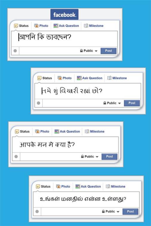 Debabrata Mukherjee, VP, Marketing and Commercial, Coca-Cola India and South West Asia, says, "Using vernacular languages helps global brands successfully localise, which helps consumers relate more to the brand, leading to a positive impact on the overall brand equity." Facebook is already available in 12 regional languages - Hindi, Bengali, Tamil, Malayalam, Telugu, Marathi, Punjabi, Gujarati, Kannada, Sanskrit, Oriya and Urdu. Facebook Lite, an Android app to cater to people in areas with low internet connectivity, also supports Indian languages.