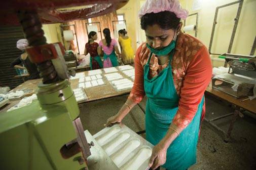 Women were not used to 'being on time'. They would arrive late, or take frequent holidays. Then, the supervisor trained to oversee the unit quit without giving notice. Luckily, the new supervisor Sandhya proved to be more efficient. "Humne phir un ladies ko hi liya jinko sachmuch job ki zaroorat hai. (We decided to take only those women who really needed the job)." To be commercially viable, each unit had to produce at least 1,200 pieces a day. After nine months of trial, error, training and supervision, the Anandi unit in Dharavi is breaking even. "Nearly 40 per cent of our units, including the one at Dharavi, are producing 1,200-1,500 napkins a day," says Mandal. "Abhi hamara quality bhi pehle se bahut achchha hai. (The quality of napkins has greatly improved)," says Sandhya.