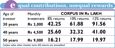 A retiree needs about 60% of his last drawn salary to maintain his pre-retirement lifestyle. Assuming that his last salary would be Rs 2 lakh, he would require Rs 1.2 lakh a month—and a corpus of Rs 2 crore. This rather daunting task is easier if you work in the organised sector. The compulsory savings in Provident Fund through both employee and employer contributions plus the gratuity payment offers some cushion. But you still need to invest more to bridge the gap between needs and means.