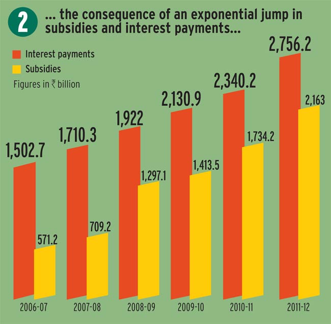 India's fiscal deficit has grown almost four-fold in the last five years. Government finances are in a disarray largely because of a mounting subsidy and interest payment burden.