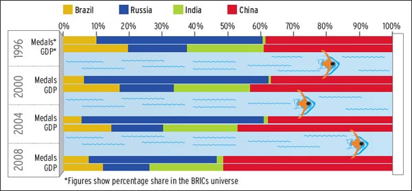 India is an exception. Despite its surging economy it fares poorly in the Olympics, in stark contrast to other BRIC nations.