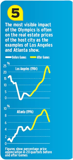 The most visible impact of the Olympics is often on the real estate prices of the host city as the examples of Los Angeles and Atlanta show.