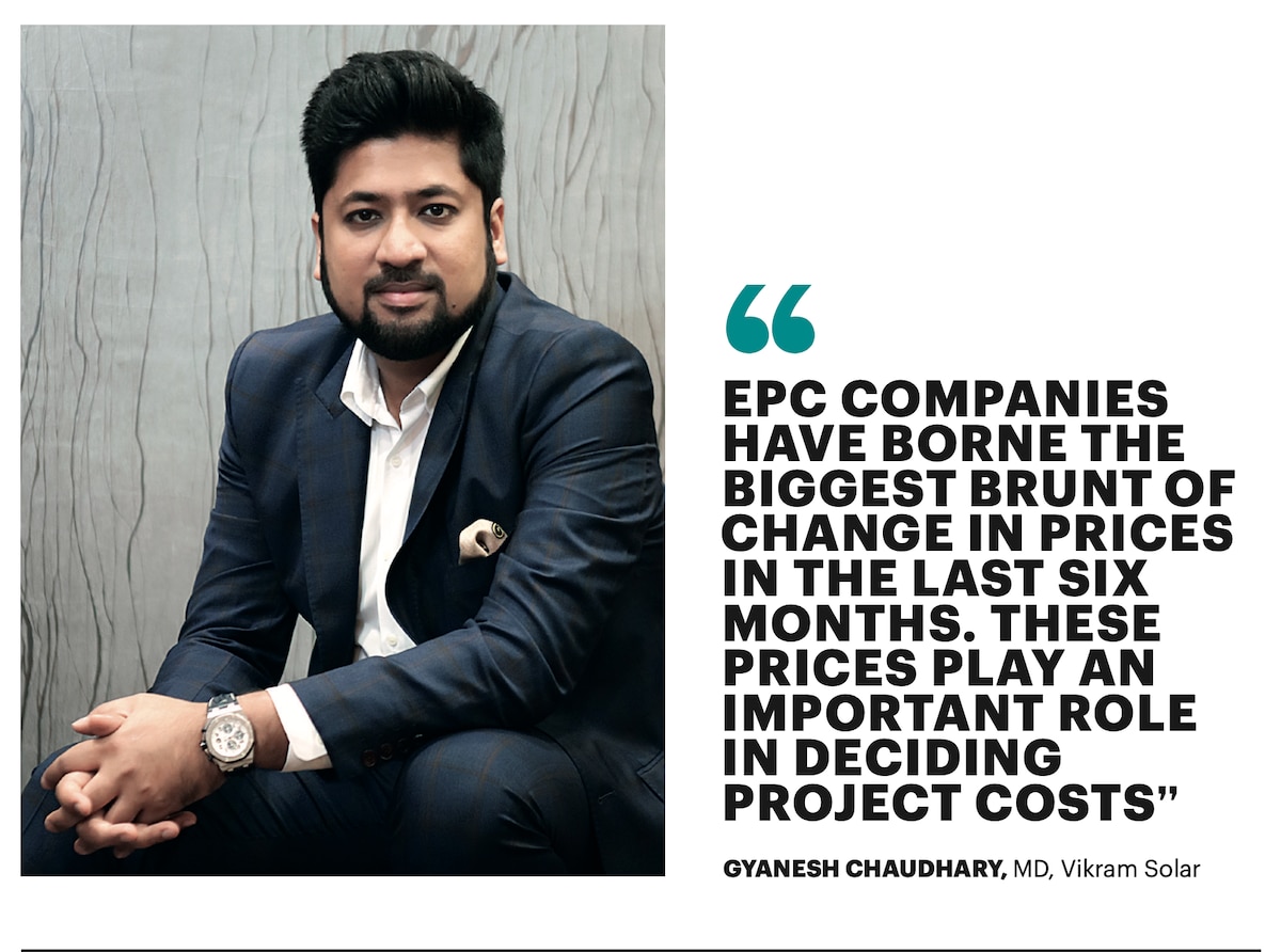 However, the pandemic changed this. Production and supply chain problems due to lockdowns, apart from high shipping freight rates and labour issues, pushed up prices of raw materials such as polysilicon, steel, aluminium, copper, PV glass and films. Solar panel prices rose 20-40 per cent. A fire at GCL Silicon’s polysilicon plant at Xinjiang in China early this month is expected to reduce global polysilicon production by another 10 per cent, further pushing up prices. “Solar EPC companies have borne the biggest brunt of change in prices in the last six months. Prices of all base metals went up by 20-40 per cent. These prices play an important role in deciding project costs,” says Gyanesh Chaudhary, Managing Director, Vikram Solar, India’s largest solar equipment maker.