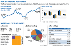 The fund is mandated to invest in the top 100 companies by way of market capitalisation. The fund manager, Apoorva Shah, does so with a liquid portfolio of about 40 stocks. Currently, 81 per cent of its equity portfolio is invested in BSE 100 stocks with the lowest market capitalised company being Colgate-Palmolive. "In such a well researched space, one does not have to buy and hold for long as price targets are achieved rapidly," he says.