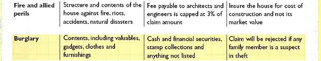 Of course, the building is not the only thing Saxena has got insured. Even the contents of the house—appliances, gadgets, furniture, furnishings, clothes and valuables worth almost Rs 5 lakh—are insured against burglary. But for that he has to pay an additional premium of about Rs 1,200 every year.