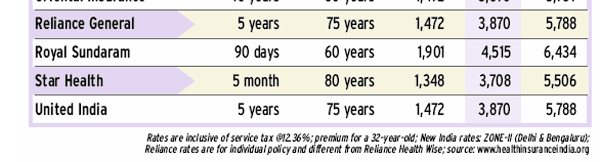 Health insurance is a tool for cutting risk and making lives simpler. The premium depends on your age, the cover and even your city in some cases. The table indicates the rise in premiums owing to the health risks that come with age. Some insurers do not cover pre-existing medical conditions. Take a nominal risk cover because for each year that you don't make a claim, your cover increases by 5%, a reward for maintaining good health.