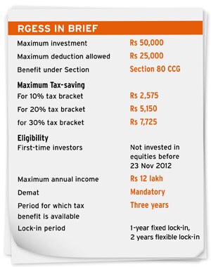 AS SIMPLE AS...Compare the RGESS norms to those of equity-linked savings schemes (ELSS) of mutual funds, investments in which are eligible for tax deduction under Section 80 C.