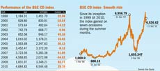 During May-October 2010, the BSE Consumer Durables index surged 1,860 points, or 40%, to 6,544.48 against 45.59% to 6,239.69 during the financial year 2010-11. The index gained 1,516 points, or 83%, to 3,348.21 during May-October 2009 against a full year growth of 153% to 4,220.71 during the financial year 2009-10.