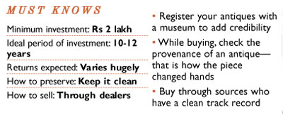 In fact, if dealers and collectors are to be believed, the past few years have witnessed such a jump in demand that there is shortage of good antique pieces. Thus prices of those available in the market have shot up by over 60-70% in the past one year alone, inform dealers. So hold fast to the assets of your forefathers. They might soon strike gold for you too.