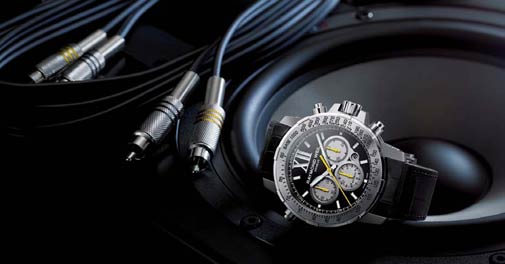 Raymond Weil's new Nabucco Inverso comes with twelve in dial Roman numerals and yellow hands that illuminate the dial. Named after Giuseppe Verdi's opera Nabucco, Inverso stands for sophistication, watch making precision and charismatic design. The watch has a 46mm case and a tachometric bezel sculpted in titanium, all elegant and powerful.