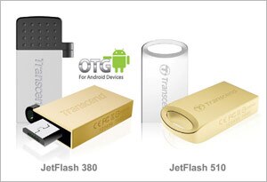 Transcend has added two new flashdrives to its JetFlash series - 380 and 510. Besides the standard USB interface found on regular flash drives, the dual access JetFlash 380 also has a micro USB connection for Android devices that supports USB On-the-Go. The 510 belongs to the luxury series and has a tiny metallic design. Both are available in 8, 16 and 32 GB capacities.