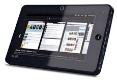 Specs: 7-inch display; 1GHz processor; 8GB memory, expandable to 32 GB; Bluetooth, Wi-Fi, 3G data card; 2MP camera; 4400 mAh battery.