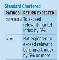 The ratings can be relative to absolute returns, sectoral returns, or the performance of the country index. A brokerage which gives sector-relative ratings will give an 'overweight' rating, if it expects the stock to outperform the sector by a given number of percentage points. Generally, a 'buy' or 'outperform' call indicates an upside of 10 to 15 per cent or above. A 'sell' or 'underperform' rating means the stock may fall 10 to15 per cent. A hold or 'equal-weight' rating suggests that buying should be timed.