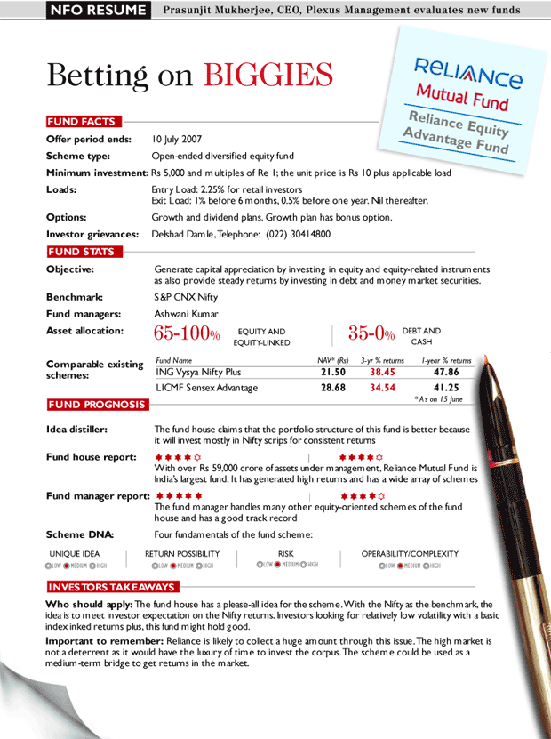 Reliance is likely to collect a huge amount through its equity advantage fund. The high market is not deterrent as it would have the luxury of time to invest the corpus.