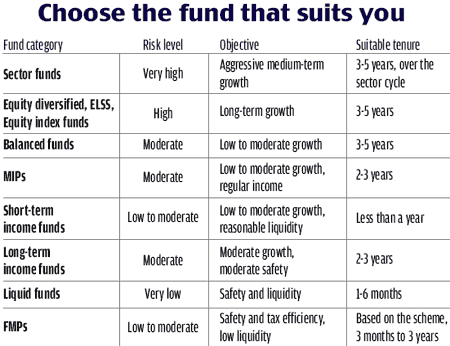 The investment objectives of the fund should coincide with those of the investor. These include tax planning, regular income, high returns and long-term planning, like children’s education. While equity funds are more tax-efficient compared with debt funds, short-term debt funds aim at regular income, whereas closed-ended equity funds aim at long-term capital appreciation. The fund should also meet the investor’s risk tolerance level.