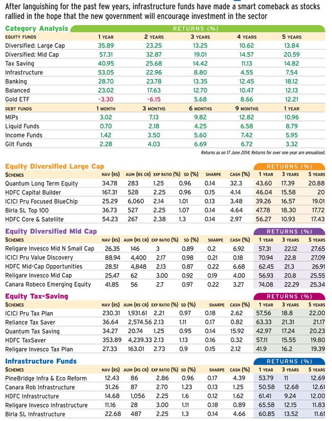 After languishing for the past few years, infrastructure funds have made a smart comeback as stocks rallied in the hope that the new government will encourage investment in the sector.