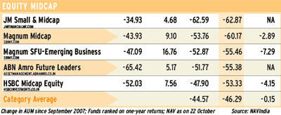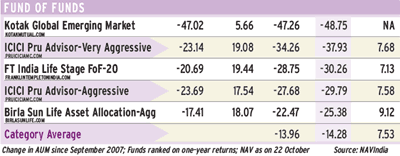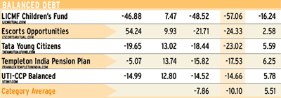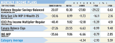 Even though the monthly income plans and fund of funds have lost the least, they generated muted returns when the market conditions were better. However, there is a huge variation in the losses of the worst performers and the category average. Reliance Regular Savings Fund-Balanced has lost 10 times more than what the category has lost as a whole.