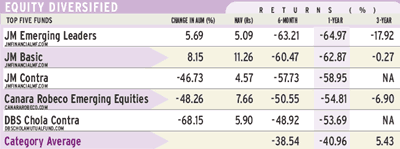 Though the past performance of a fund does not guarantee future returns, it is best to avoid funds which have been consistent non-performers. The worst performing equity-diversified funds lost more than half their values in the past year, while the top fund, Birla Sunlife Dividend Yield, contained its losses to 24%. As a category, these funds performed better than tax plans over three years.